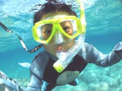 - スノーケルが初めての方も安心。はじめはスタッフが丁寧にスノーケルの使い方、泳ぎ方を講習します。ウエットスーツを着るので沈みませんので泳げに方でも安心。小さなお子様と希望者にはライフジャケットを装備。