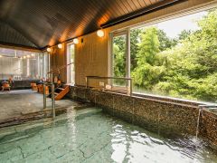 人気の秘密はナトリウムイオンや炭酸水素イオンメタケイ酸の含有量が高い強アルカリ単純泉にある。皮膚表面の脂肪分を分解し、脂肪酸ナトリウムを生成する湯は高い美容効果のほか、腰...