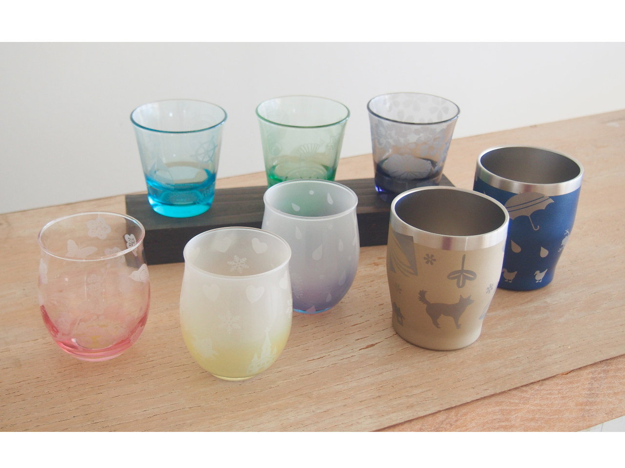 - 世界にたった1つのオリジナルグラスを! デザインはお好きな図柄もOK♪デザイン集のご用意もあります。 吹付けのブラスト機械も自分で体験! 作品はその場で完成! ★当店HPにて作品ご紹介中★