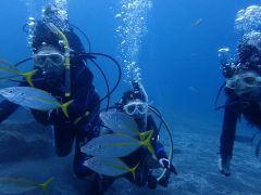 - わかりやすい講習、陸上での練習など基本スキルをしっかりレクチャー。 不安を一つひとつ取り除いたあとに、ダイビングできるから初めてでも安心! ダイビング・海の魅力を明るいスタッフが楽しくご案内します!