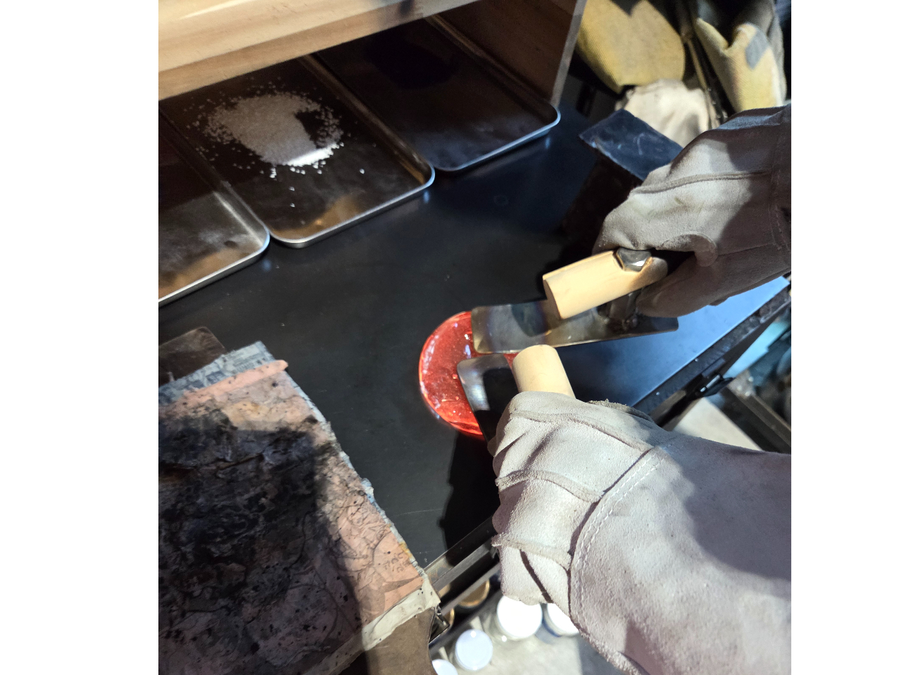 - ・吹きガラスとは違った技法でもっとガラスを触って作った感が欲しい方におすすめ! ・マンツーマンで丁寧にお教えしますのでお一人様でもカップルでもご家族でもご安心して体験いただけます!