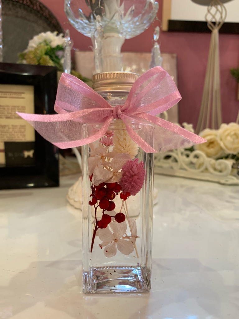 - お好きなボトル(大・小、各1本ずつ)にお好きな花材でお作りいただけます♪ 簡単なラッピングもご準備いたしますので、プレゼントにもどうぞ★