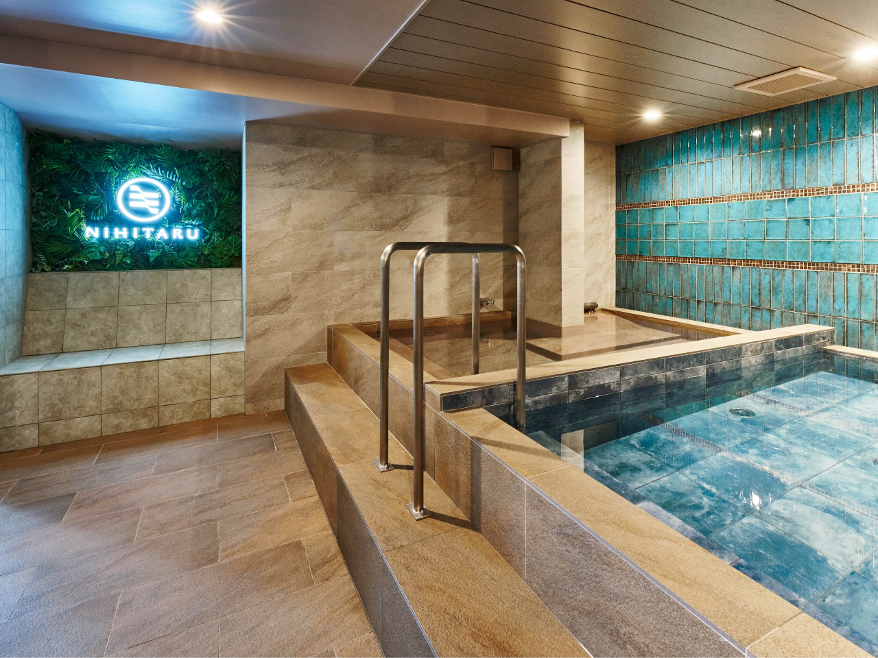 - 大地や自然の色に近いアースカラーを基調とした落ち着きのある空間に、 サウナ、水風呂、休憩スペースを完備。 あたたかいお風呂で心まで癒し、ぬくもりに浸ってください。