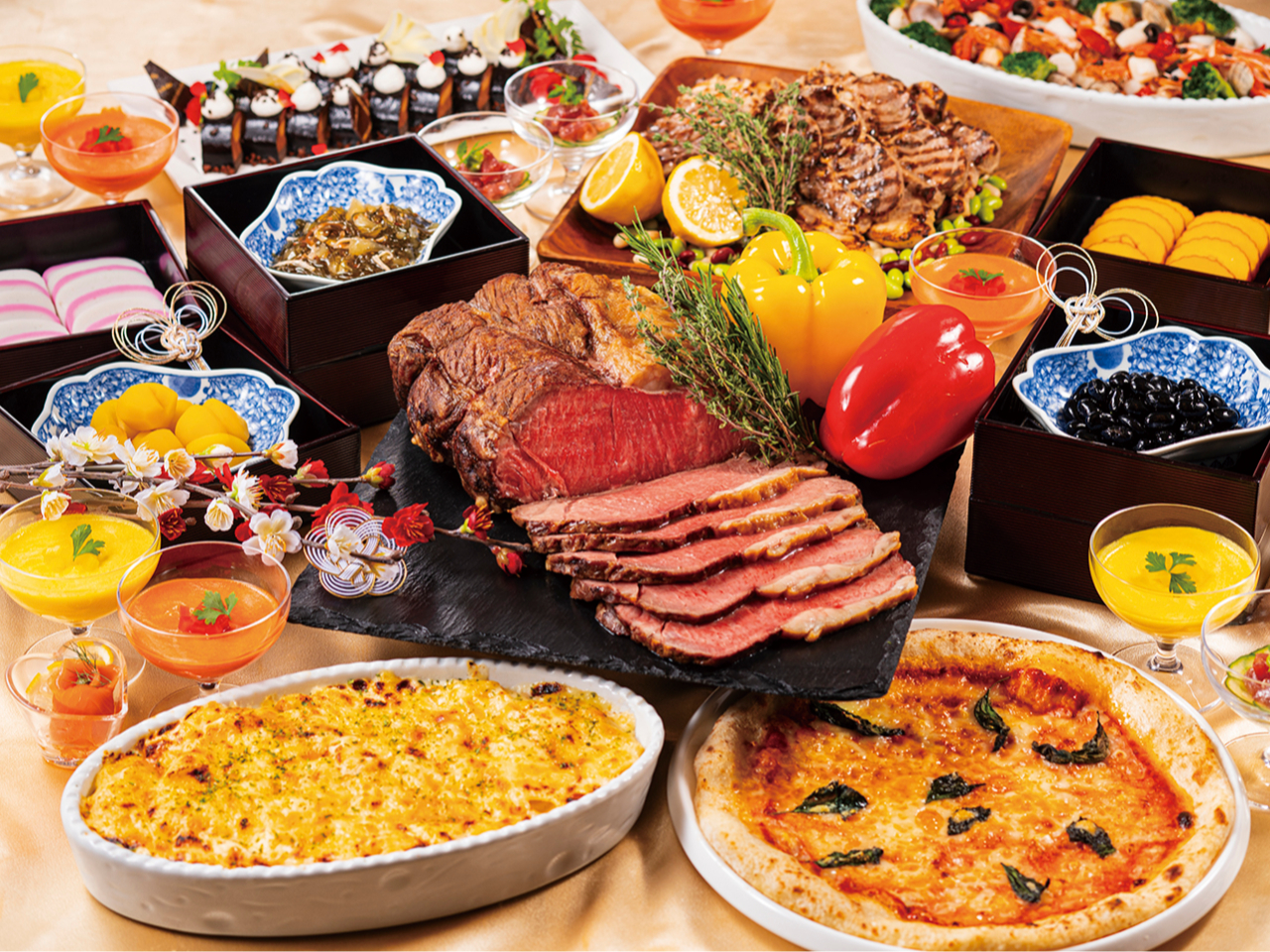 - 新しい年の始まりには、みんなで祝う新春ブッフェをお楽しみください。 ライブキッチンにはシェフが仕上げるジューシーなローストビーフが登場!