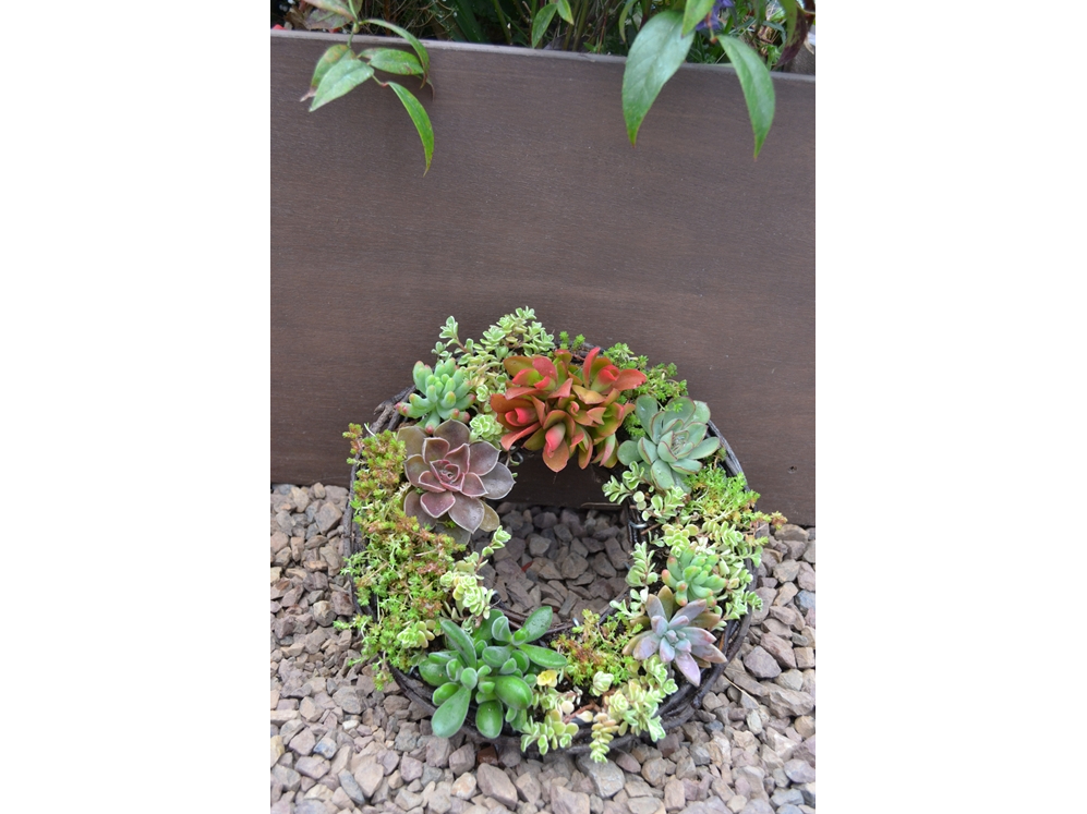 - zoomによるリアルタイムオンラインレッスンで多肉植物リースの寄せ植え製作体験ができます