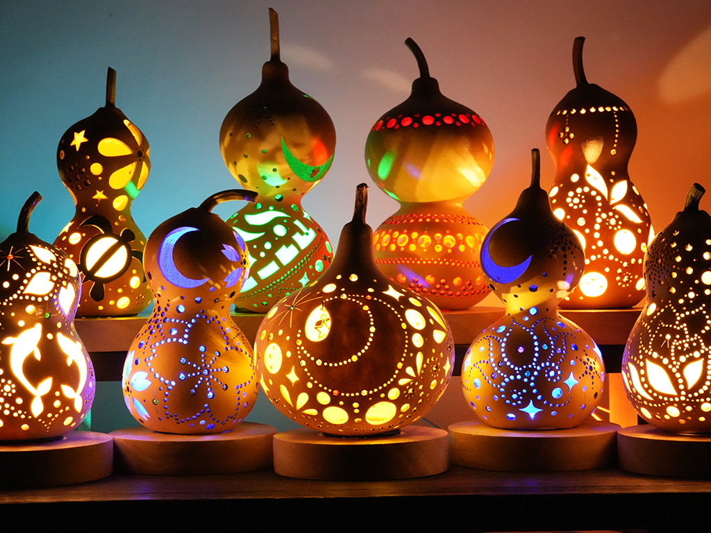 - ひょうたん栽培20年以上のプロ農家が教える、温かみのあるひょうたんライト作り。 気軽なSSサイズから本格的なLLサイズまで、幅広いライナップは業界随一! さらに各サイズから豊富な姿形を楽しく選べます!