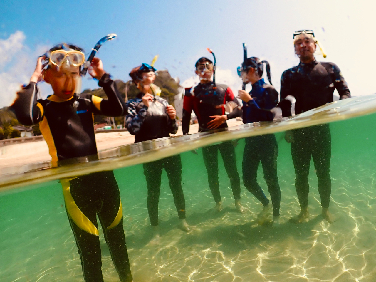 - 沖ノ島の自然豊かな海で安心・安全シュノーケリング 親子で楽しめる沖ノ島シュノーケリング体験。スタッフがスキル練習から安全面まで丁寧にサポートするので、初めての方やお子様でも安心して参加できます。