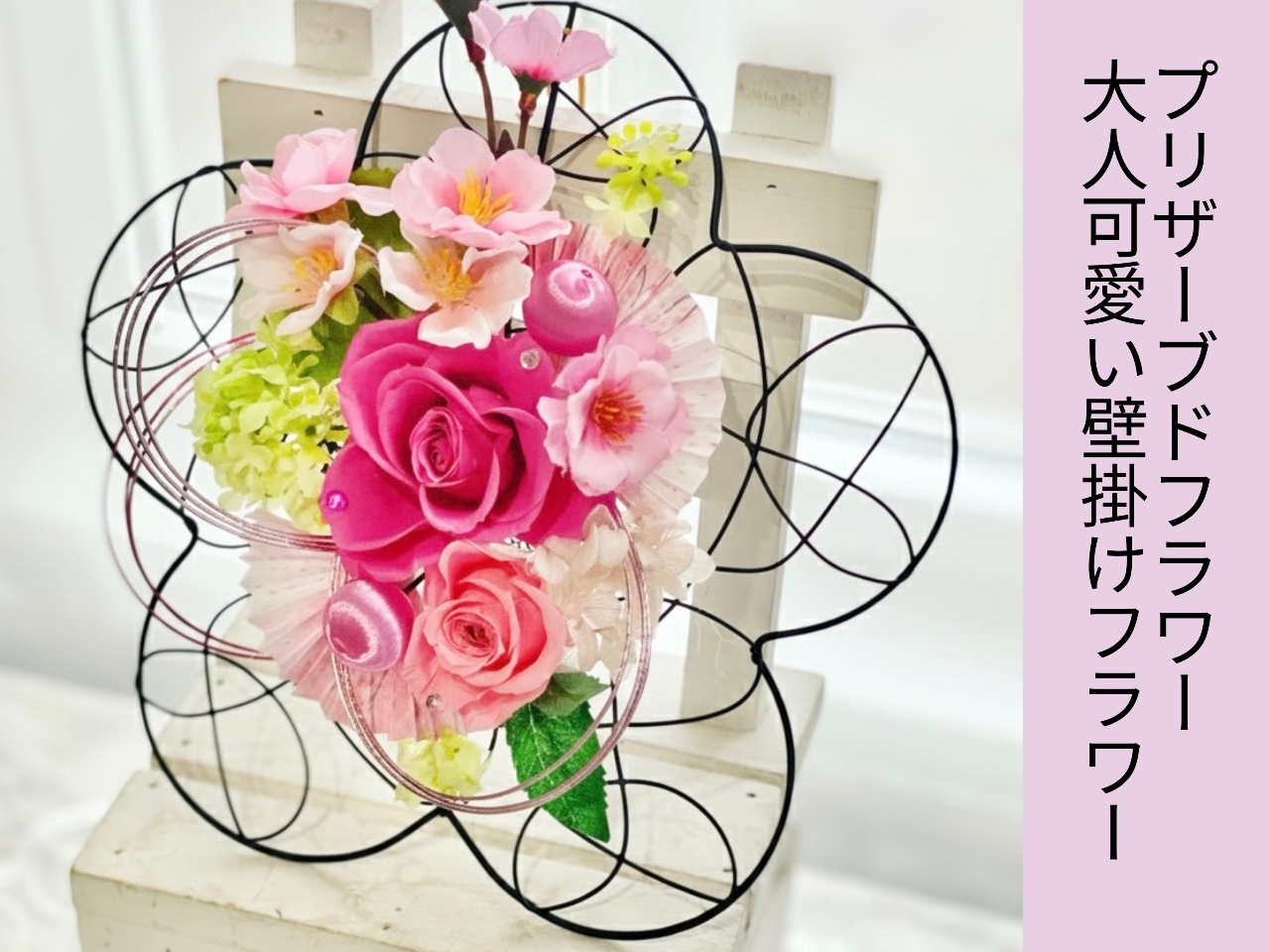 - 大人かわいい壁掛けフラワー【プリザードフラワー】