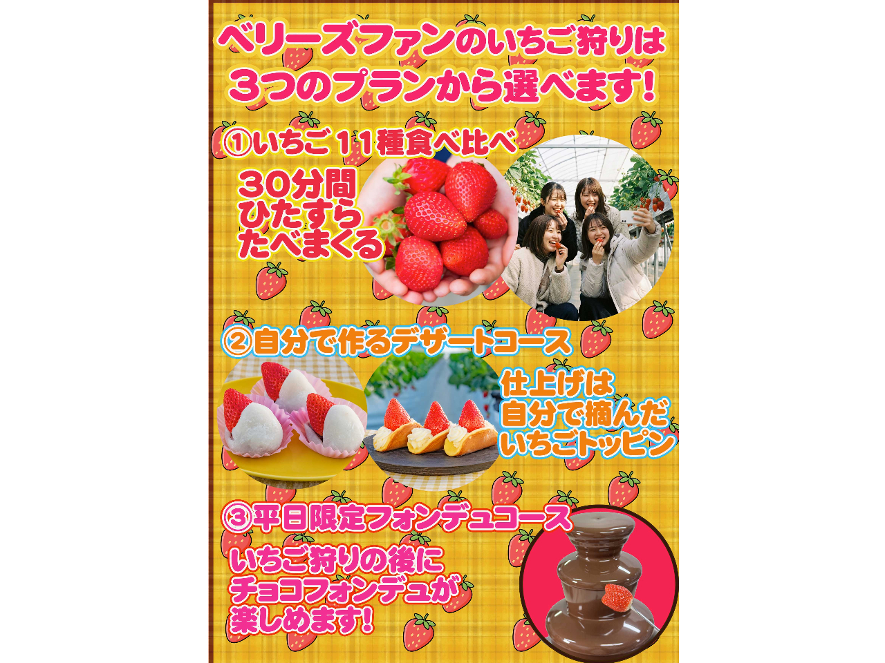 チョコフォンデュ&練乳付き!スイーツも食べ放題!【いちご狩り/11品種/35分】高級品種スカイベリーなどを食べ比べ♪高設でラクチン☆〜ファミリー、カップルにおすすめ
