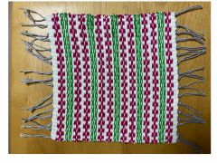 - こんなかわいいデザインの織物が織り未体験の初心者さんでも織れます。しかもデザインを自分で考えることもでき、糸の色を選べば世界で一つだけの織物になります。簡単で楽しい織りをぜひ体験しにいらしてください。