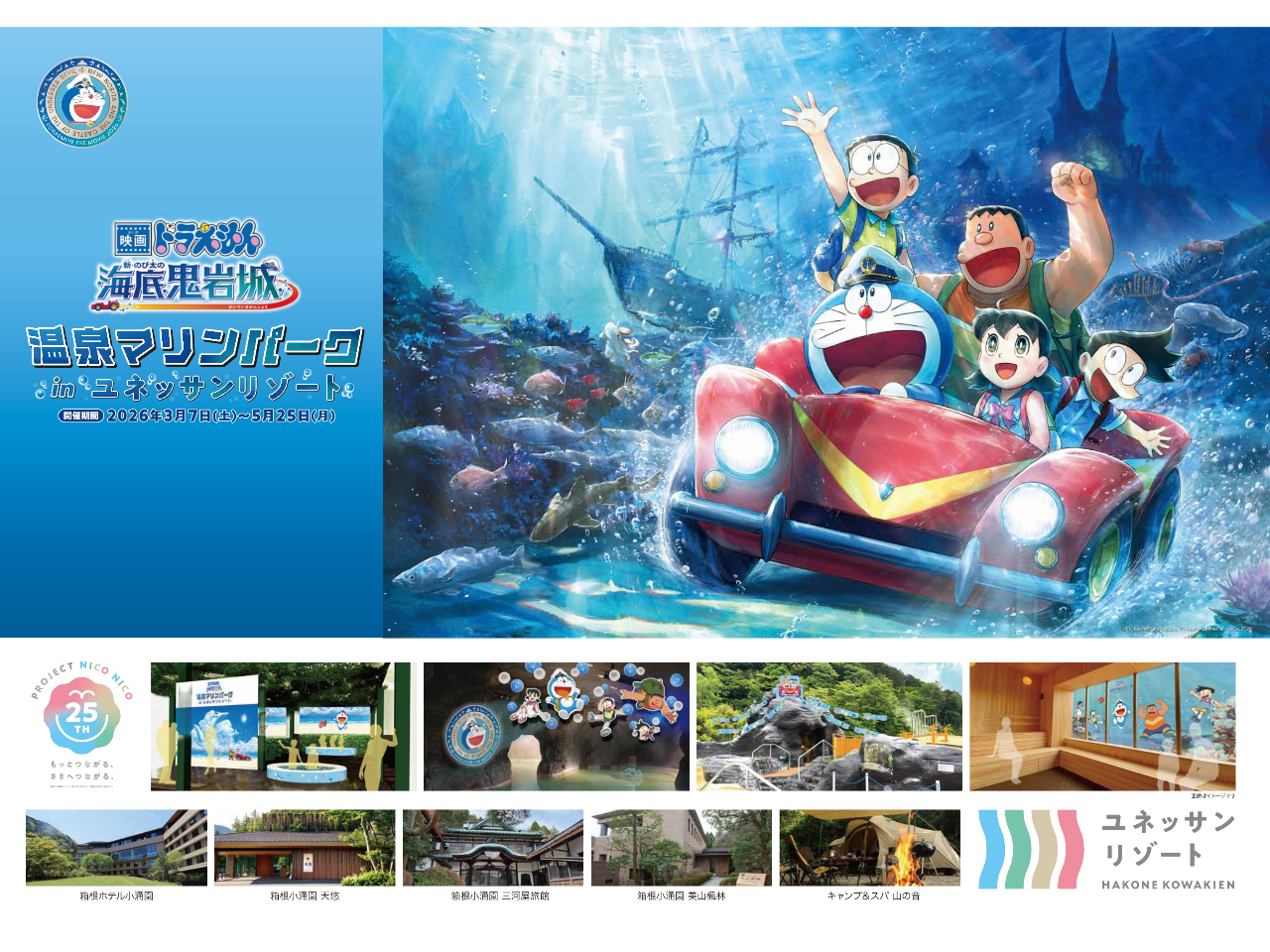 最大400円お得!【1/1〜ユネッサン(水着エリアのみ)プラン】2026年は開業25周年イヤー!『映画ドラえもん』タイアップ開催中!直前まで予約OK◎