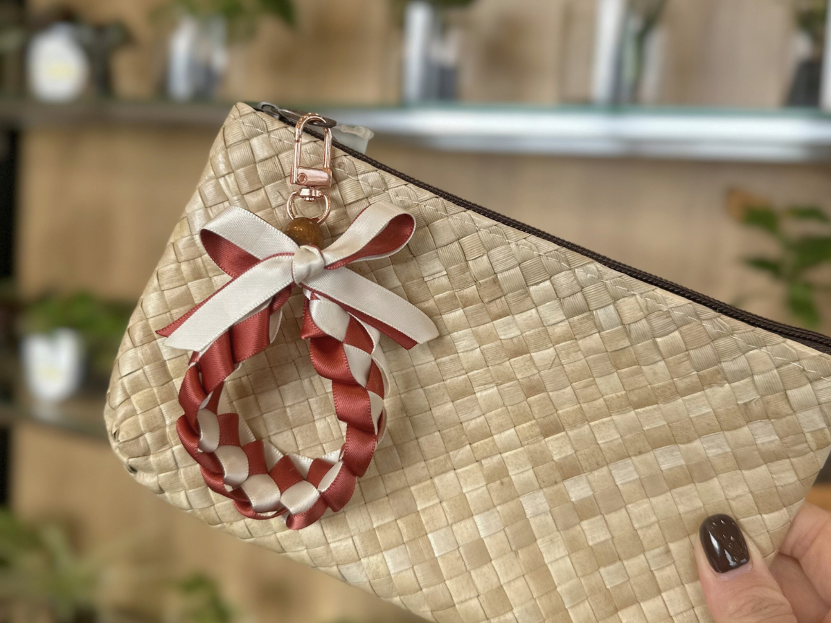 - ハワイでは花や葉以外にもウルベヒヤーン(毛糸)やリボンを使ったレイ作りも盛んです。ウお好きなリボンを組み合わせて自分だけのハワイアンリボンキーホルダー作り体験ができます♪