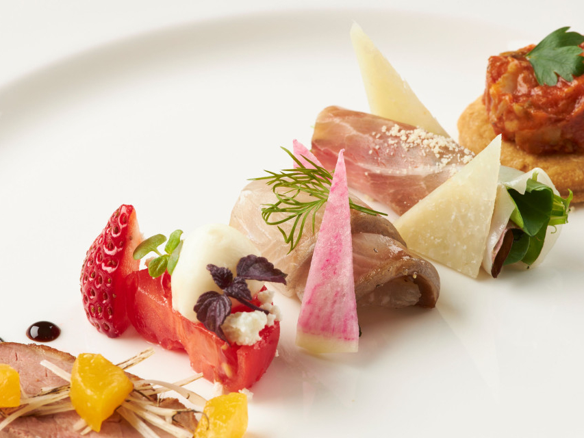 - 山口雅美シェフ監修 「和イタリアン」 和のだしや食材の旨味を活かしながらイタリアンならではの調理法と彩りで仕上げた逸品の数々。 ここでしか味わえない「和×イタリアン」を心ゆくまでお楽しみください。