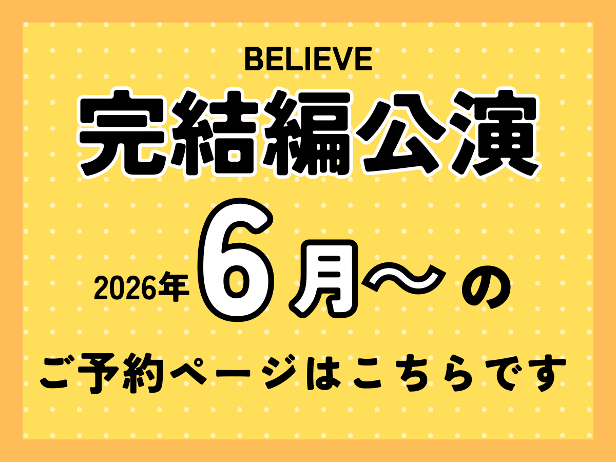 - 友希天星さんによる特別なサイキックショー3部作!3作目である「BELIEVE」(完結編)。目の前でご堪能ください!
