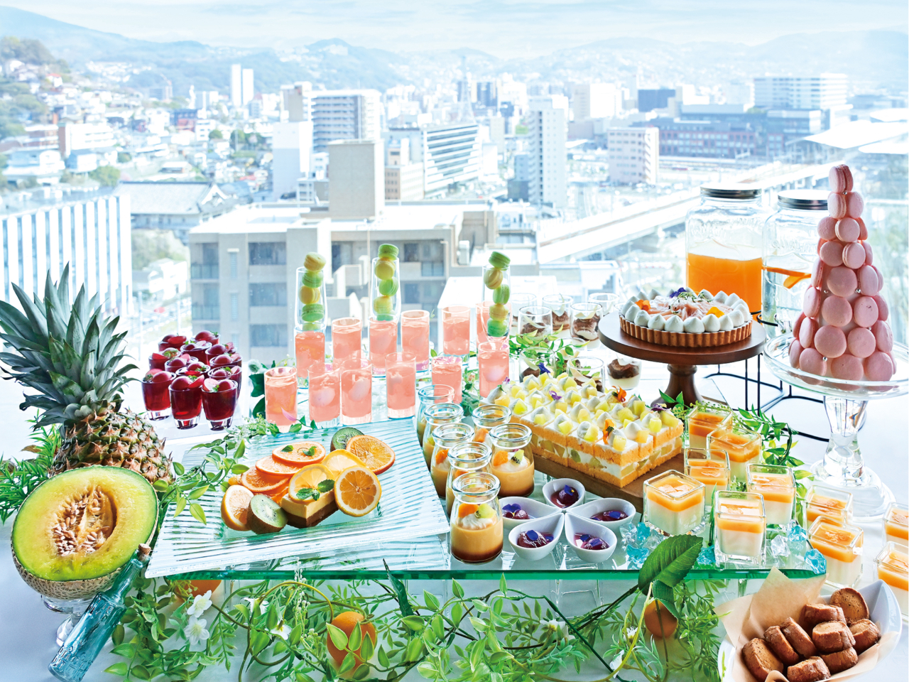- 人気のスイーツビュッフェを3・4月に開催決定! 苺をふんだんに使った人気のスイーツを15階からのロケーションと共にお楽しみください。