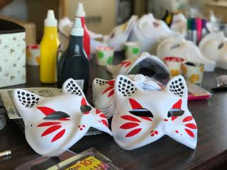 【お面の絵付け体験☆子ぎつね最中1個付き☆】姫島盆踊りの盆化粧をお面にペイント♪ 〜ファミリー・友達同士・カップル・お1人様全ての方におすすめ〜