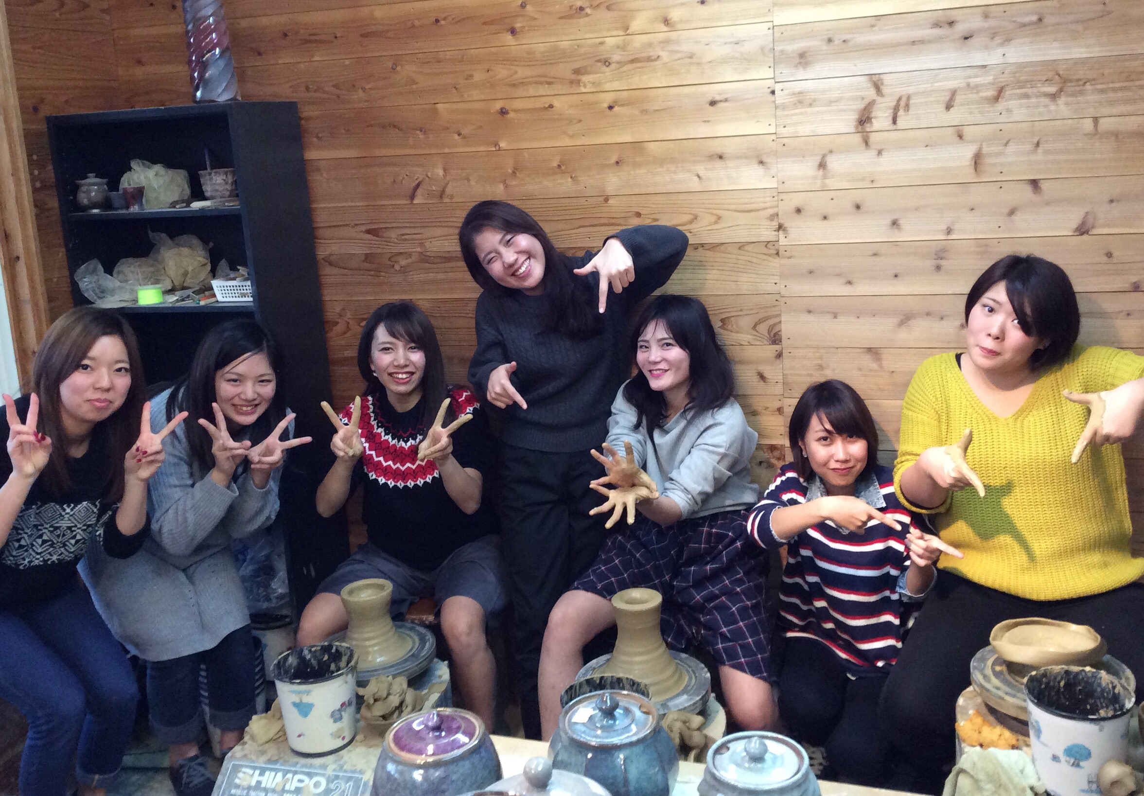 - ◆グループでもカップルでも大丈夫!一度に6台の”ろくろ”で体験できます。 10人の場合、2グループに分けて。 第2グループの方々は第1グループの方々を自分の予習として見学すると、退屈しませんよ♪