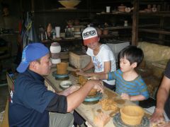 - 作品は手びねり、手回しろくろなどで作ります。 陶芸の楽しさを味わってください。 茶碗でも花器でも、何でも好きなものを作れます。 お手伝いします。
