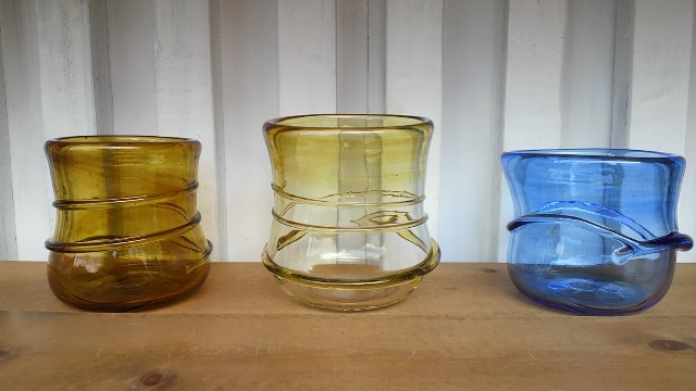 - 廃瓶100%の再生ガラスと言えば沖縄の琉球ガラス 沖縄の琉球ガラスと同じ作り方で素朴な味わいのあるガラスが福岡でも作れます 色は予め準備した3色から選べます。2色、3色の組み合せも可