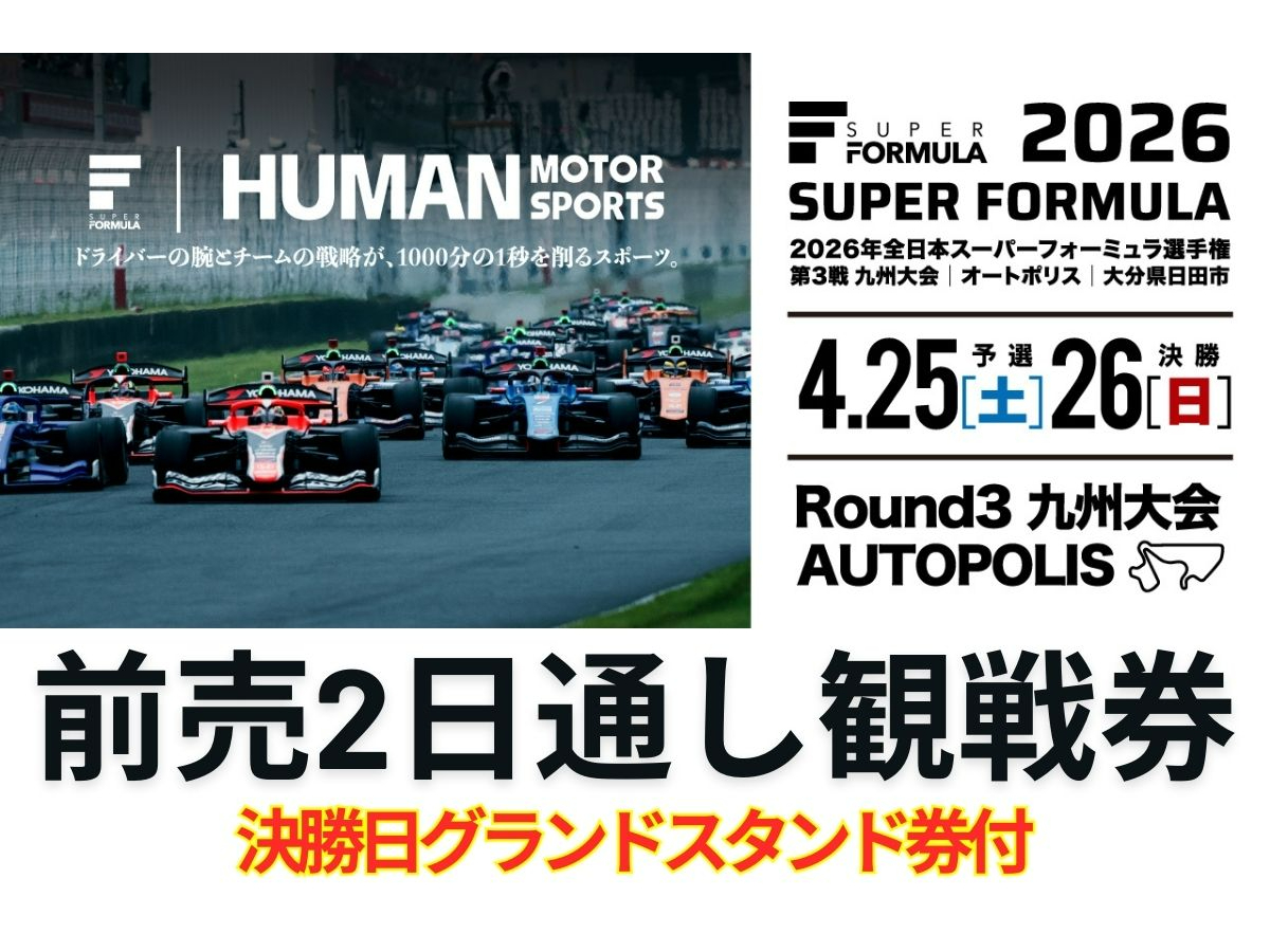 《前売》観戦2日間通し券+決勝日グランドスタンド入場券付き【2026年 全日本スーパーフォーミュラ選手権 第3戦 九州大会 AUTOPOLIS 】【4月25〜26日開催】