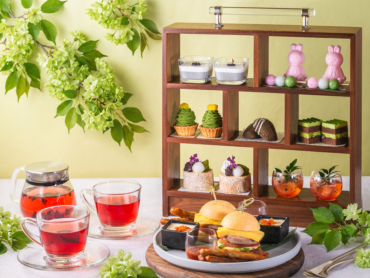- 初夏のやわらかな日差しに包まれながら楽しむ特別なティータイムはいかがですか? 抹茶や黒糖、ほうじ茶など和の素材をふんだんに使用した、この季節限定のアフタヌーンティーをご用意いたしました。