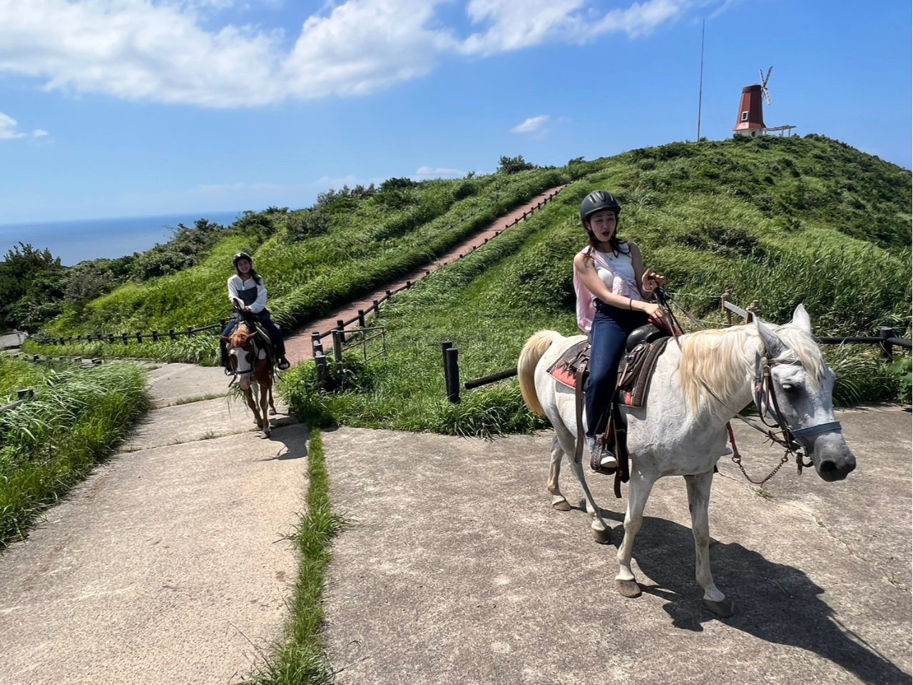 - ・小学1年生から体験OK、自分で手綱を持ってお散歩してみよう! ・大島の絶景の中で乗馬体験!