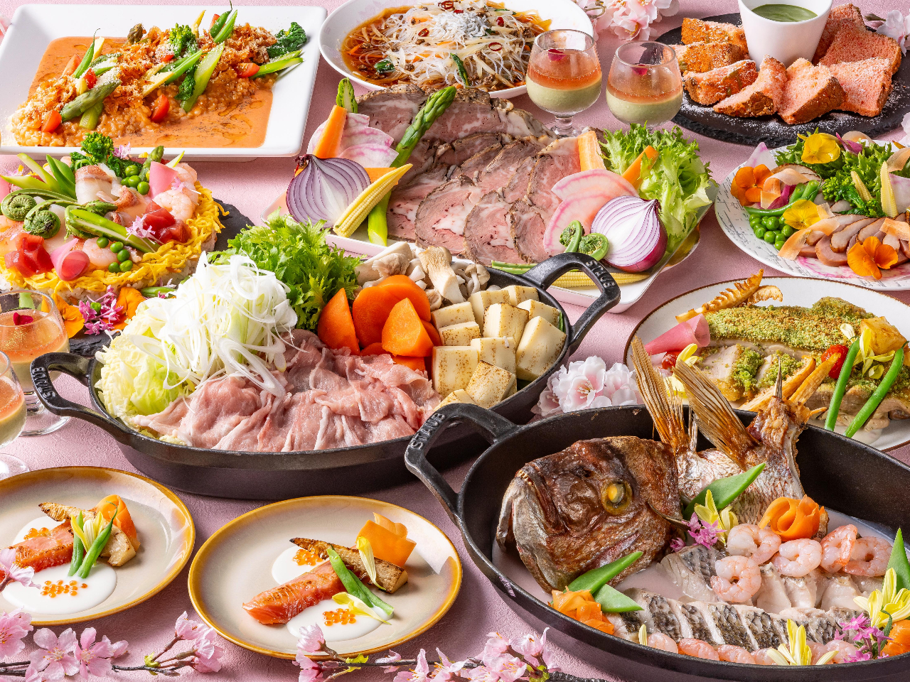 - 春の訪れを楽しむ、彩り豊かなランチブッフェ 桜エビや春キャベツ、山菜など、春ならではの食材で、見た目にも華やかな春らしいメニューをご用意しました。春の庭園を歩くような色とりどりの美味をご堪能ください。
