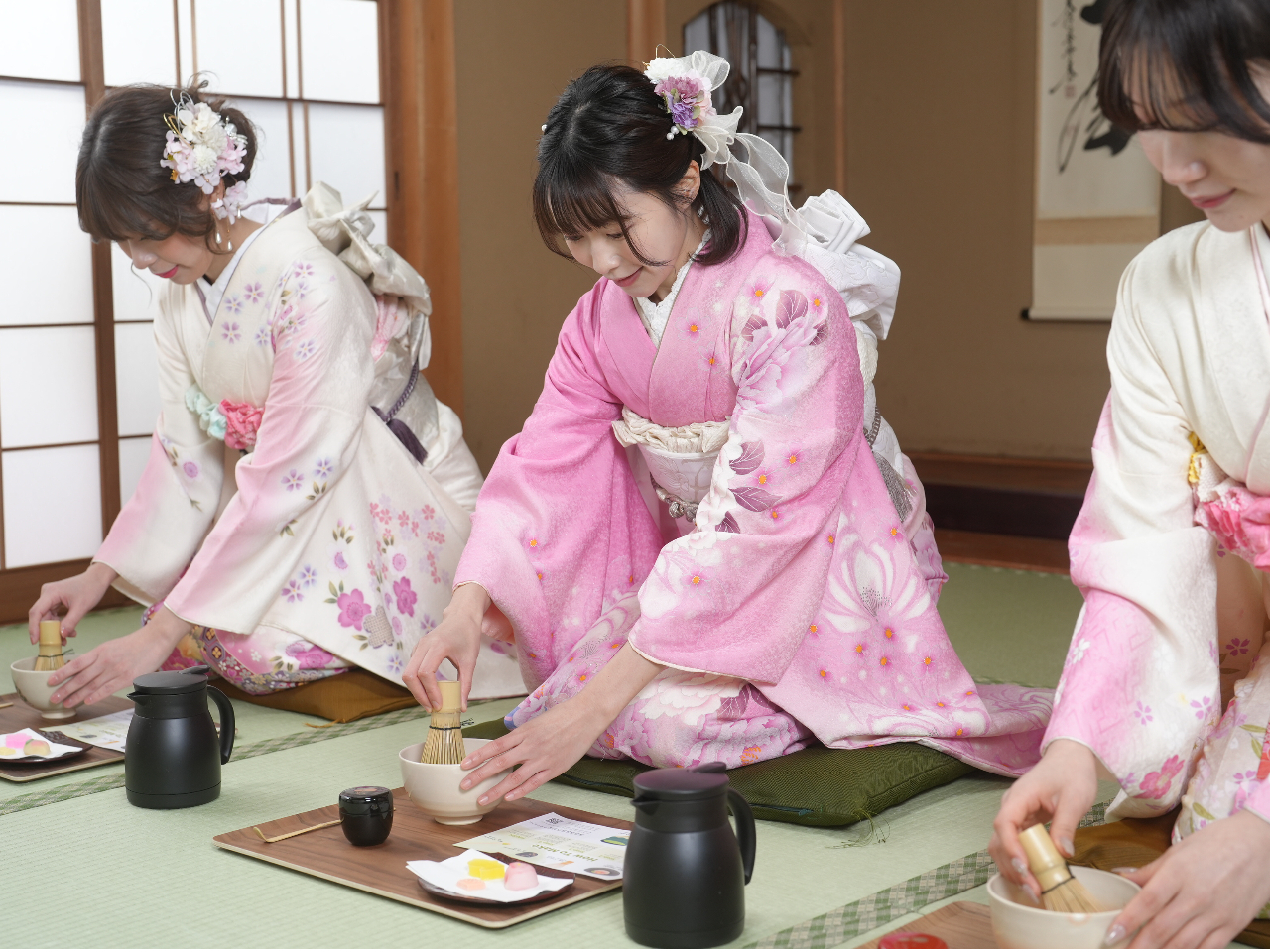- ★安心!手ぶらで来店&追加料金なし★ @着物はどの柄を選んでも同一価格です Aヘアーセットと髪飾りも込みの価格です B大きな荷物も無料でお預かりします C着物レンタルと茶道体験が同じ施設内でできます