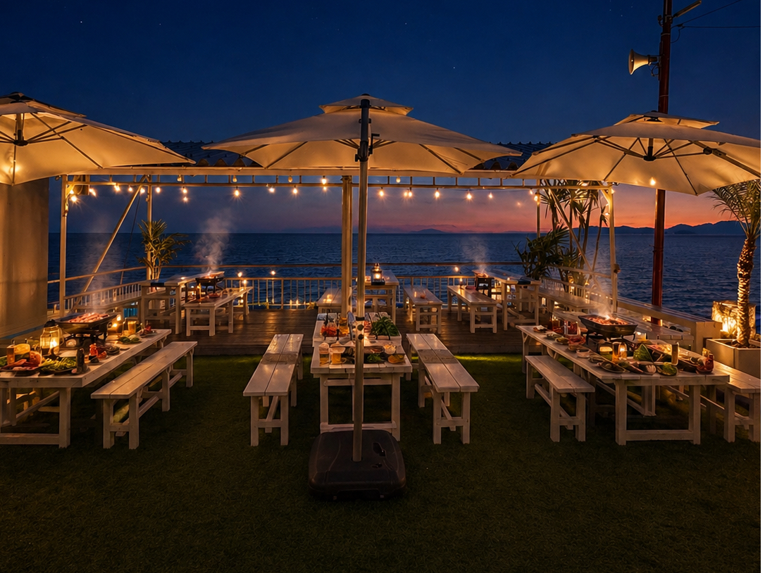 【食材付きナイトBBQコース】絶景テラス席でBBQ!!《友人・ファミリーにおすすめ》