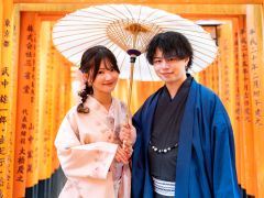 - ◇通常価格9,900円の男女カップル着物が5,000円に!!着付け・ヘア・小物全て込 ◆シンプルにお安くデートの味方!!財布に優しいプランです♪期間限定 ◆【伏見稲荷大社すぐ】駅からも近く移動に便利♪