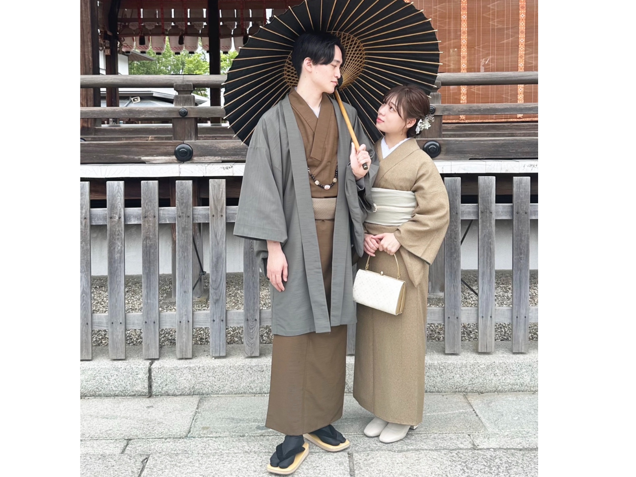 【着物レンタル|カップルプラン(10〜5月限定)】カップルでお得♪袋帯や名古屋帯で上品な装いに!着物で過ごす特別な1日を※コロナ対策実施中※
