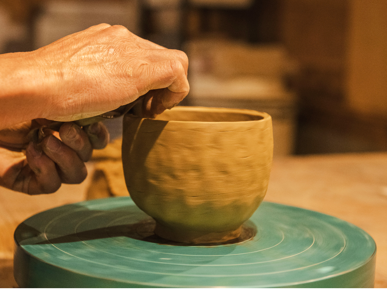 - 陶器製作の各工程(手びねり・電動ろくろ成形,削り成形,絵付け,釉薬がけ)を約2時間で体験できるプランです.作品は4つ出来上がります.