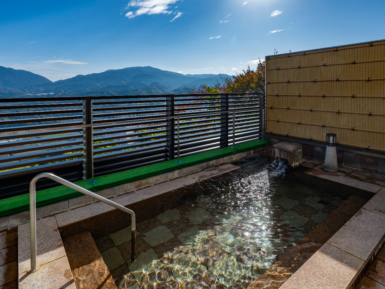 インフィニティ露天風呂から吉野山の四季を感じることができます♪絶景インフィニティ露天風呂で歴史ある吉野の大自然を満喫くださいませ。