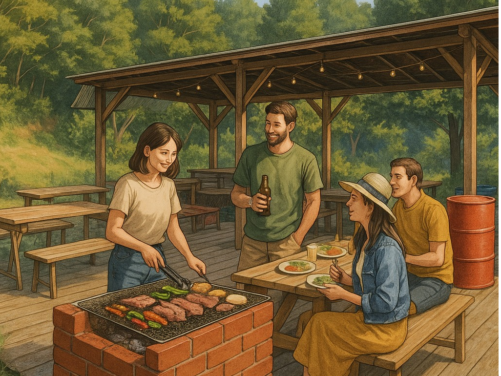 - 各自、食材や機材を持ち込んでのBBQ わいわいガヤガヤ・・・持ち寄った自慢の食材に舌鼓 テントを張れば日帰りキャンプ気分も味わえます