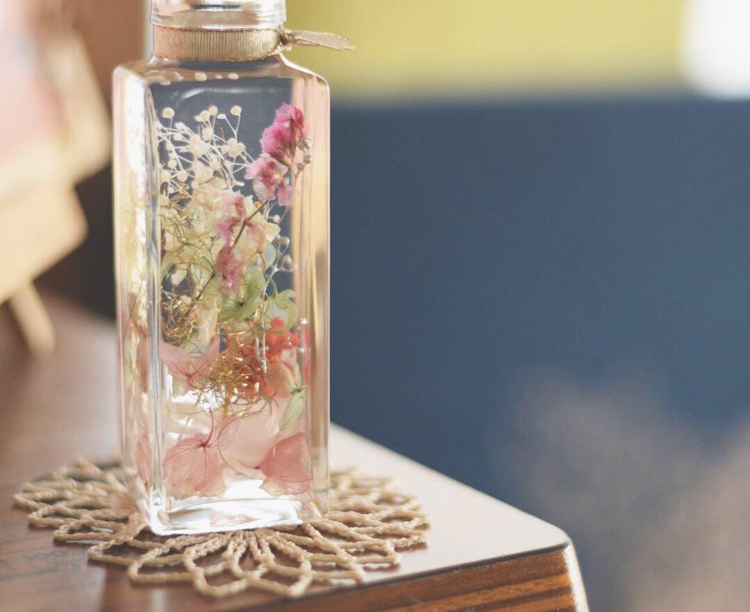 - ハーバリウムとは特殊な液体にドライフラワーやプリザを入れ、液体の透過性や光の屈折で植物自体の美しさをデコレーションし数か月から数年の保存が可能なインテリアです