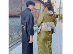 カップルプラン 着物・浴衣レンタル(帯飾り無料特典付) 清水寺まで徒歩9分 手ぶらでOK&女性ヘアセット付きのお得なプランもご用意♪【女性・カップルにオススメ♪】