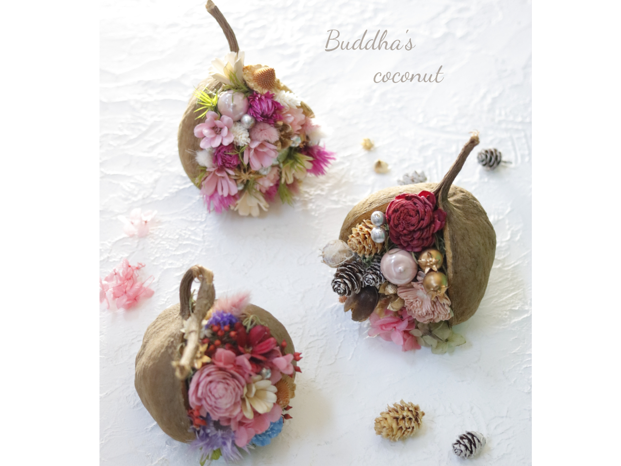 - ※午前の部はお電話やメール、各種SNSからのみの受付です。 大人気の自然の木の実のアレンジ。 お好きな木の実、プリザーブドやドライフラワーでマイペースにオリジナル制作。 初心者様歓迎。