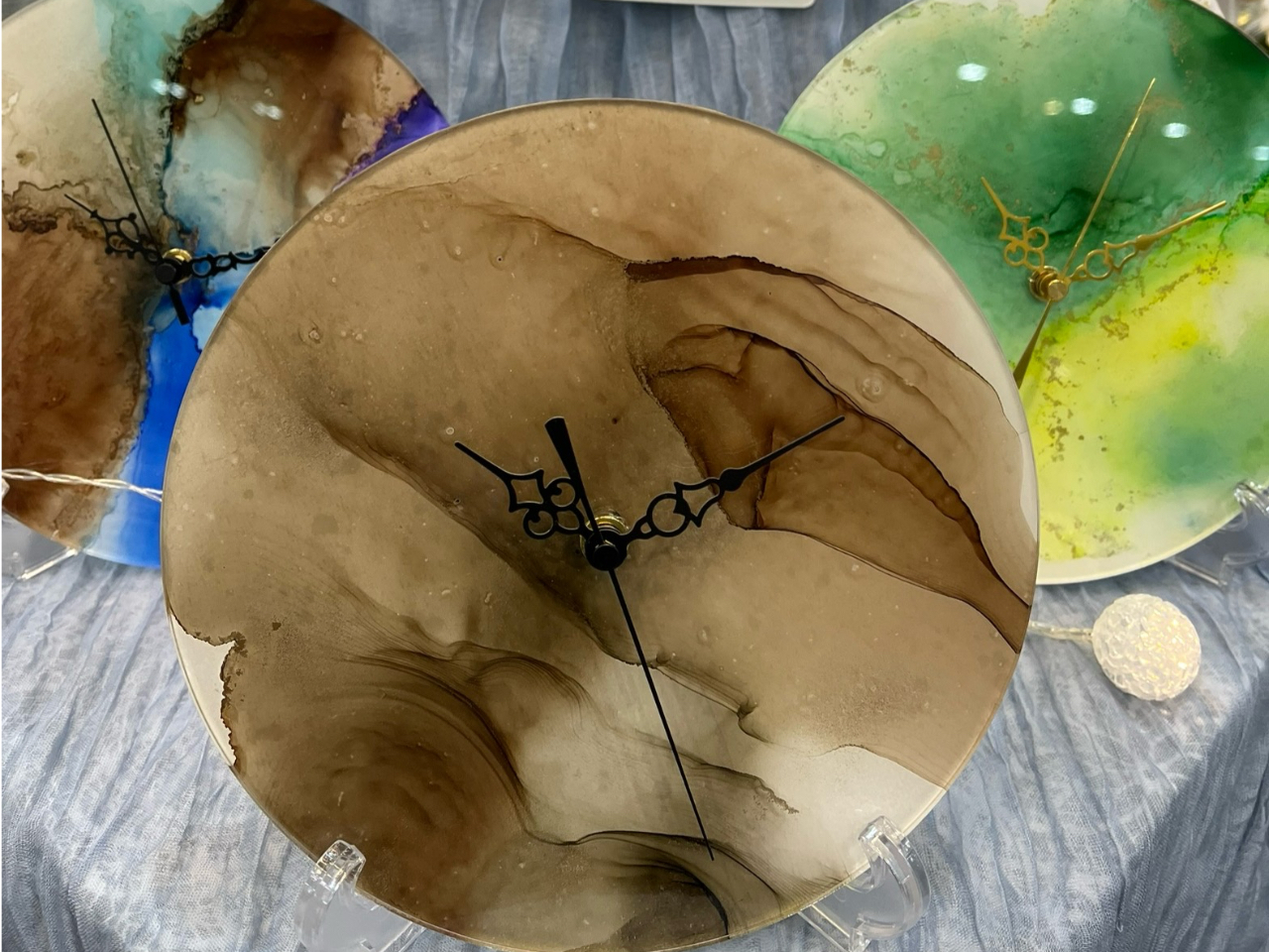 - 世界にひとつのアートを描き、アクリル時計にして持って帰れる体験です◎ ※アルコールインクアート体験を受講後、申込み可能です