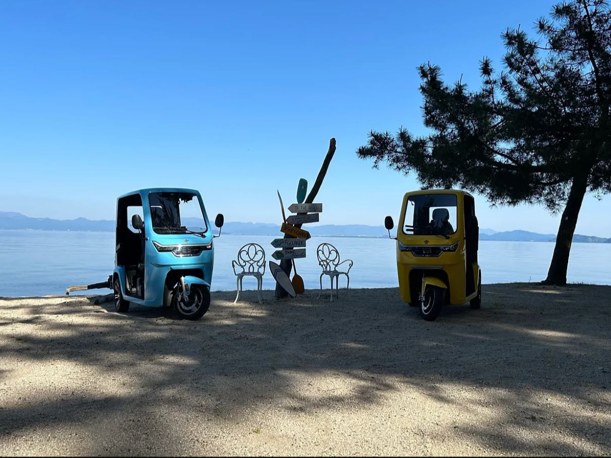 - ドアの無い3人乗り電気自動車TUKTUKで琵琶湖や大自然を直に体感できるプランです! 1台のレンタル1時間3300円〜お得なプランをご用意♪ 観光やインスタ映えなどを目的とした方におすすめです♪