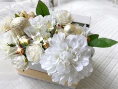 - アーティフィシャルフラワーのBOXアレンジ♪【白・ゴールド】