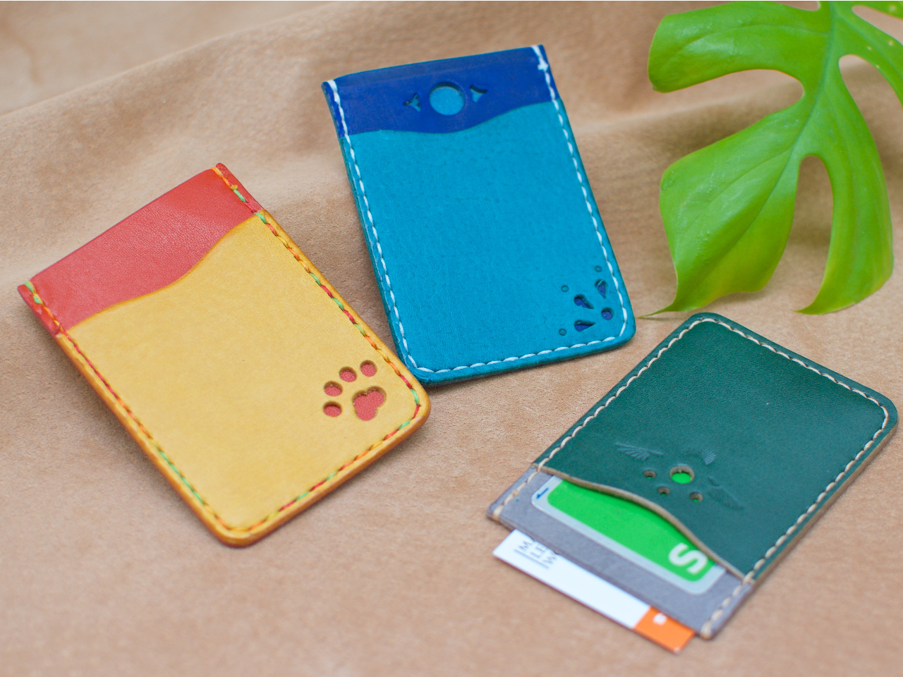 - 体験コースの中で最もシンプルなパスケースは初心者の方にもおすすめです。工具、材料などは当教室でご用意いたしますので、お気軽にいらしてくださいね!革の下処理〜接着・縫製まで本格的に体験していただけます!