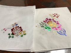 - すり金加工したハンカチに蝶・うさぎ・虎などの手描き友禅を体験していただきます。 *ハンカチは5柄になります。
