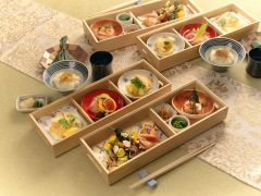 - 本格的な日本料理の味わいをそのままに、5種類のメニューを二段重にバランスよく盛り込み、目でも楽しめるお弁当に仕立てました。