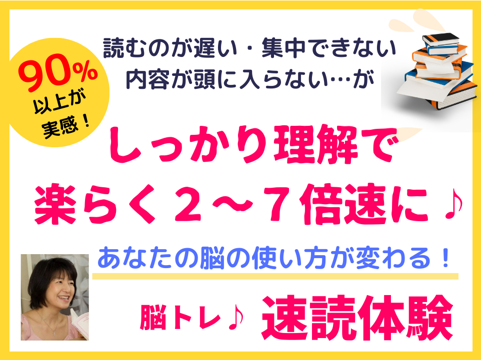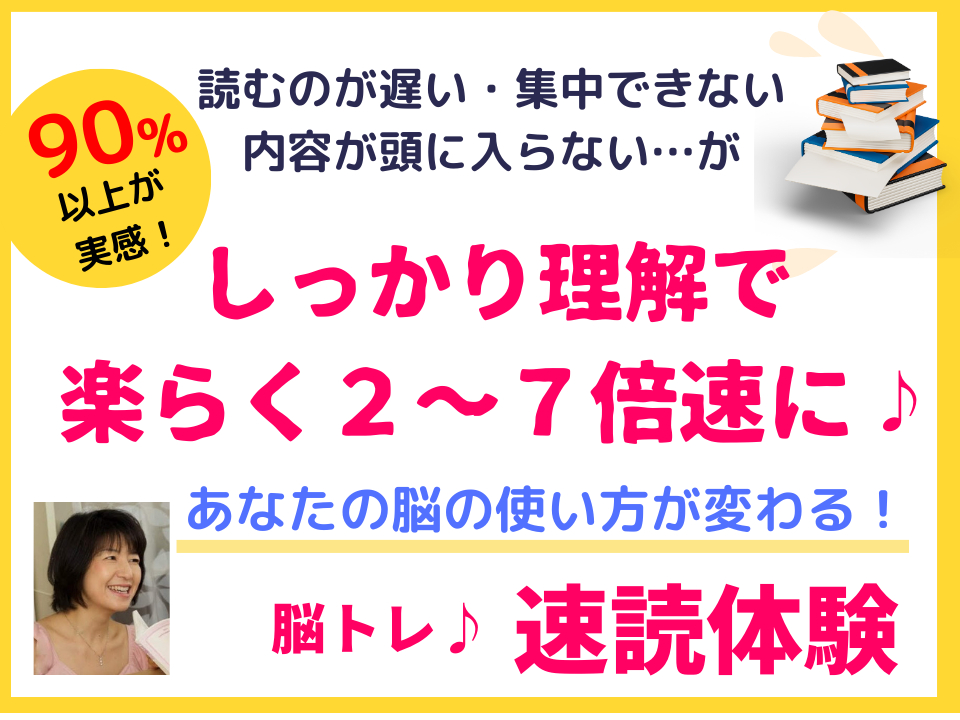 【オンライン体験】脳トレ速読体験 90%以上が実感! 読むのが遅い・集中できない・内容が頭に入らない...が、楽しくラクに誰でも☆熟読で2〜7倍に!!