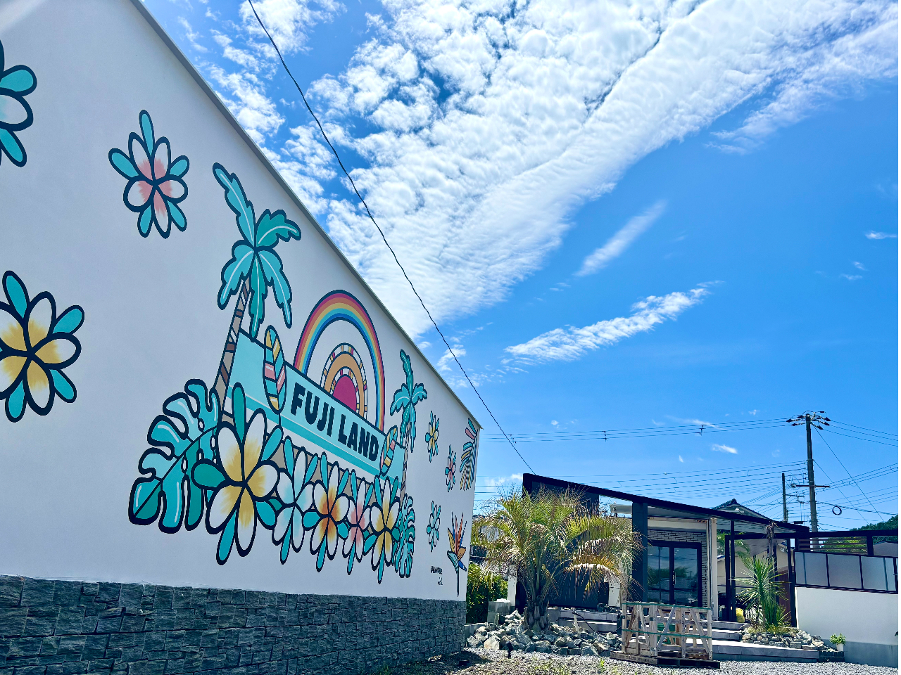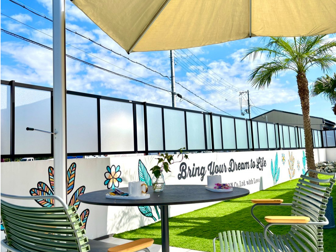 - 南国風ガーデンとアートな壁画がフリーマーケットやイベント空間をより華やかに彩ります。フォトジェニックな空間で特別なひとときをお過ごしください。