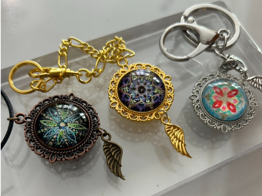 - カラーセラピー体験からわかる〜おまもりカラーでミニミニ曼陀羅アート体験。ご自身が描いた曼陀羅アートで、キラキラの開運アクセサリーをつくりましょう♪アクセサリーにすることで、ずっと身につけて頂けます。