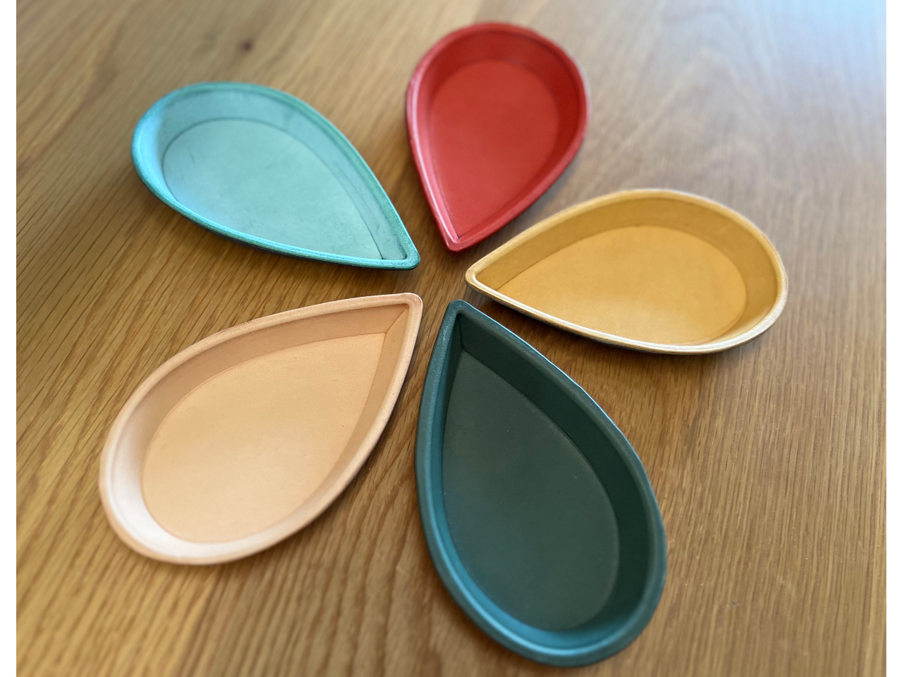 - ◎立体成型で作る、「雫型トレイ」をつくろう!! ◎自分で作るレザークラフト小物♪プレゼントにもぴったり! ◎アクセサリー、キーなどが入れられます。 ◎通常は、約10日後の発送となります。