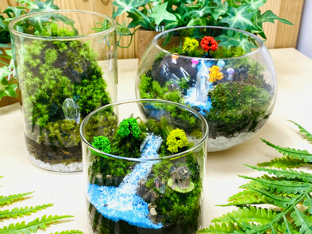 - ◆ガラス容器に苔(こけ)を植えたり石を置いて、あなただけの自然の風景を作っていただきます! ◆デスクやリビングなどに飾ったり、プレゼントにも最適です♪ ◆初心者の方もご安心してお越しください。