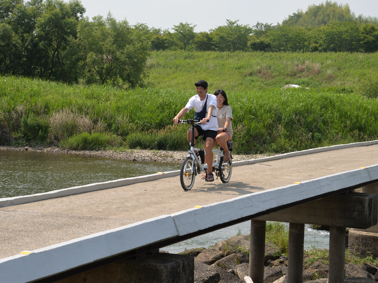 - タンデム自転車は2人で乗れる。だから、楽しさ2倍!当社では、タンデム自転車でもサイクリングし易いコースを用意しております。ガイドは同行しませんので、自分たちのペースでサイクリングをお楽しみください。