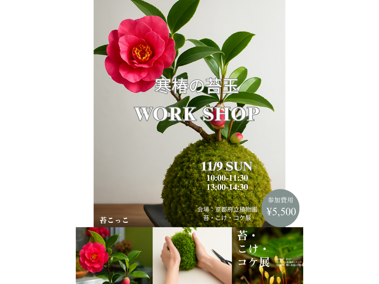 - 冬の訪れを彩る美しい寒椿を使用した苔玉作りのワークショップを開催いたします。 苔玉はお部屋のインテリアとしても人気があり、自然の趣を手軽に楽しめるアイテムです。 初心者の方でもご参加いただけます。